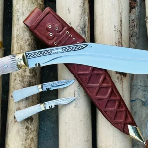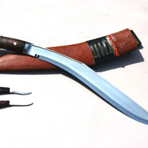 A: Two smaller knives, called “Karda” and “Chakmak,” are typically included with a kukri. The Karda functions as a utility blade for tasks such as cutting, skinning, opening tin cans etc. while the Chakmak serves as a honing tool to sharpen the kukri’s primary blade. Collectively, these components transform the kukri into a versatile and useful tool for a variety of tasks.